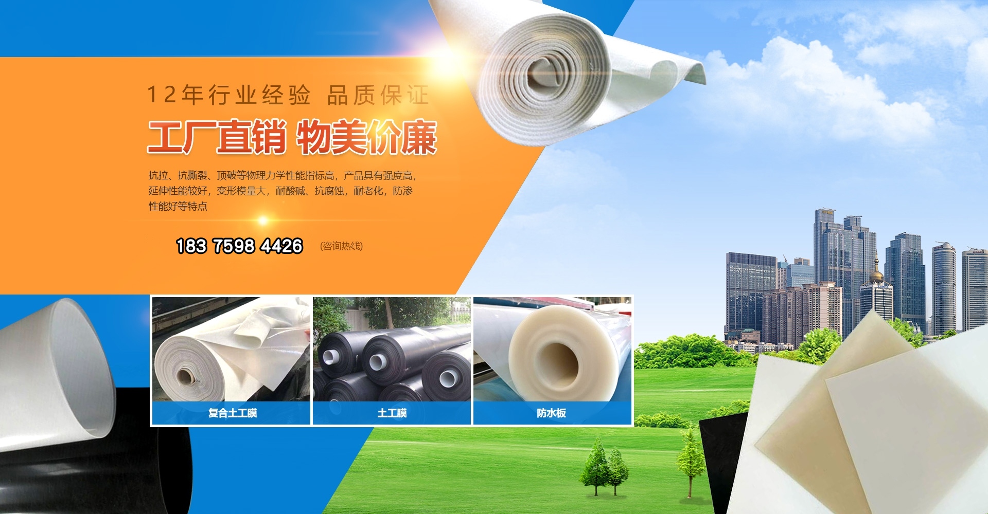 土工膜以塑料薄膜作為防滲基材,與無(wú)紡布復(fù)合而成的土工防滲材料,新材料土工膜它的防滲性能主要取決于塑料薄膜的防滲性能。防滲應(yīng)用的塑料薄膜,主要有聚氯乙烯(PVC)和聚乙烯(PE)、EVA(乙烯/醋酸乙烯共聚物),隧道應(yīng)用中常設(shè)計(jì)使用,它們是一種高分子化學(xué)柔性材料,比重較小,延伸性較強(qiáng),適應(yīng)變形能力高,耐腐蝕,耐低溫,抗凍性能好。