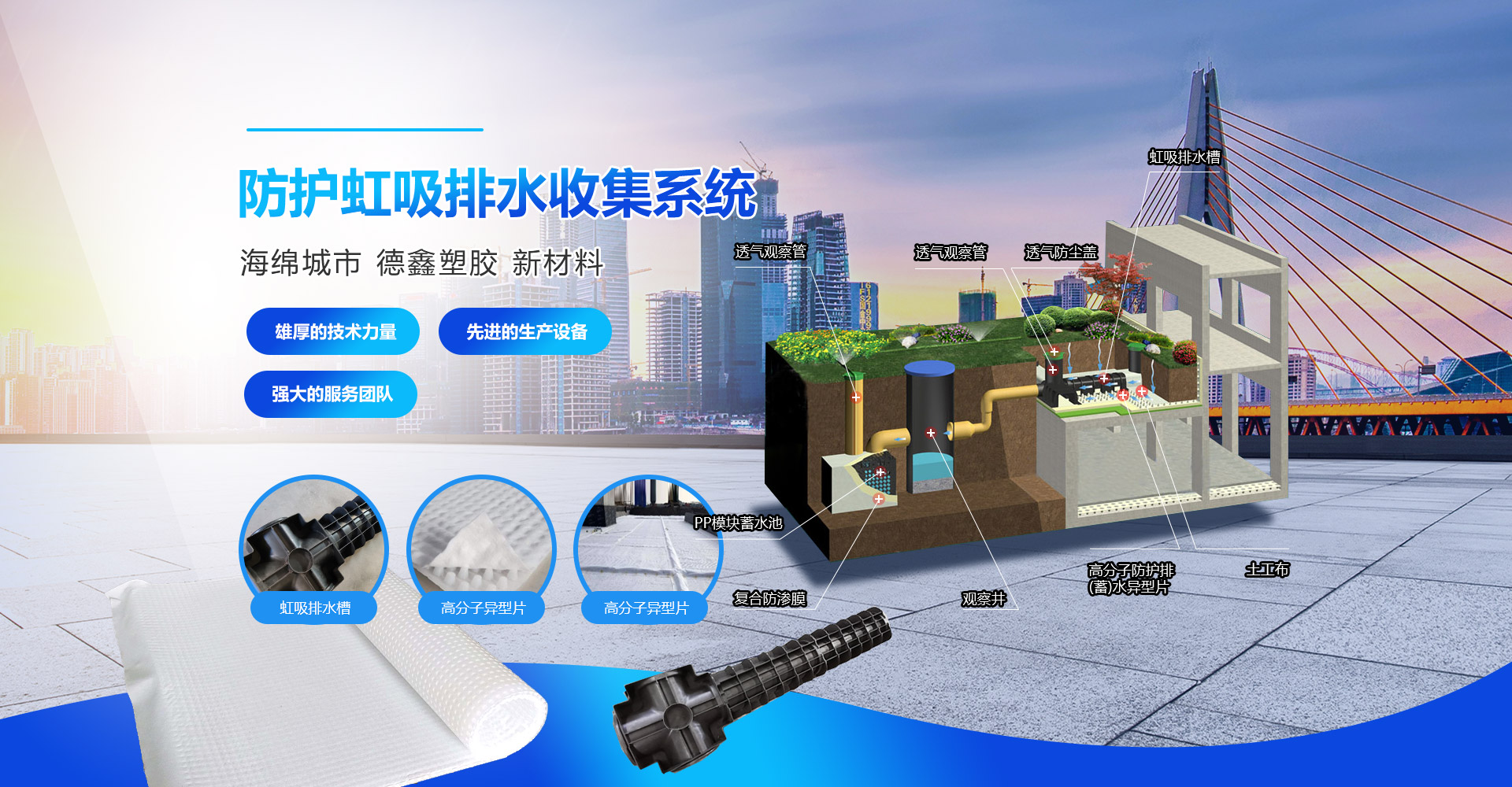 虹吸排水系統(tǒng) 雨水收集系統(tǒng) PP蓄水模塊 土工膜 復(fù)合土工膜 防水板 塑料盲溝管 防排水板 蓄排水板 土工布 土工格柵 土工格室 溢水格柵 生態(tài)袋 土工席墊 植草格 植草盆 線性排水溝 萬(wàn)能支撐器 三維植被網(wǎng)